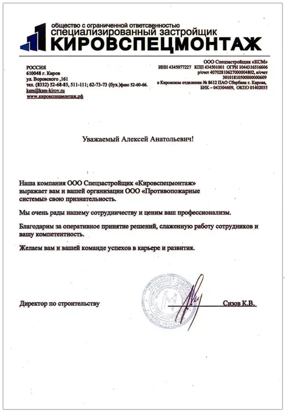 Благодарственные письма